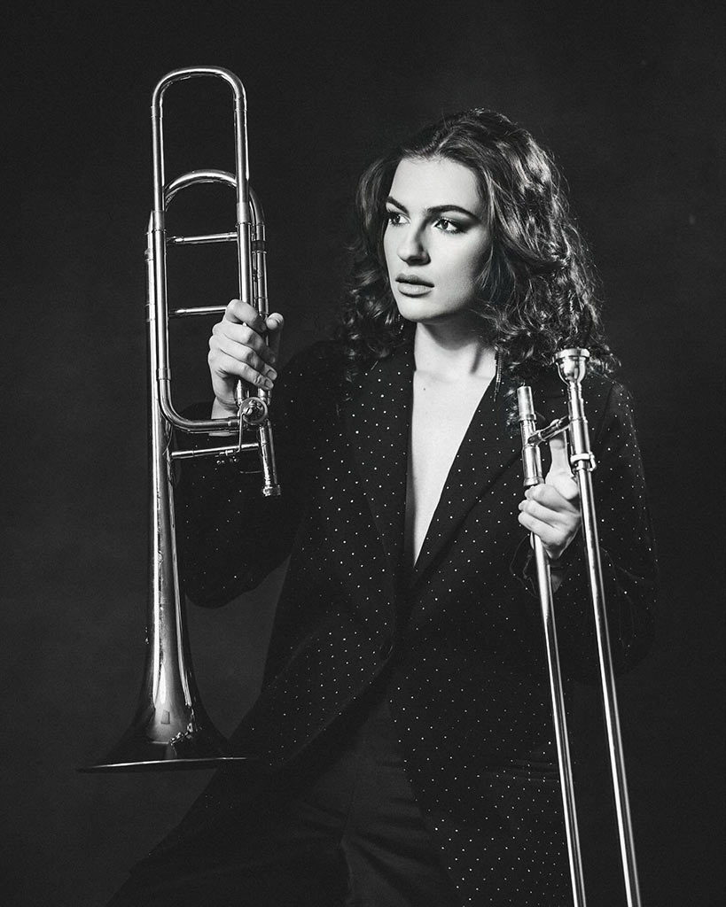 – Мне очень повезло. Вот если бы я училась в 80-90-е годы или еще раньше… Ведь тогда не было хороших записей. Не было никаких записей вообще. Это была проблема — найти и послушать какую-то хорошую. Пара записей А.Т. Скобелева, В.Б. Баташева, Кристиана Линдберга, в общем-то и все. Но, так как я росла в век интернета, записей вокруг было огромное количество, абсолютно любых: и классических, и джазовых, и каких угодно стилей. Я переслушала большой объем музыки, недостатка в аудиоинформации у меня не было. Я очень удивилась узнав, что оказывается на тромбоне можно играть не только джаз, а еще и классическую музыку, что и послужило толчком для поступления в Гнесинское училище, ведь я учусь не на джазовом отделении, а на классическом, уже заканчиваю академию в классе Владимира Хаимовича Школьника. Вообще, многие известные джазовые музыканты базовое обучение получали классическое, а дальше выбирали, что им ближе и что больше нравится. Меня очень вдохновили классические записи Кристиана Линдберга, Джозефа Алесси, то, как люди здорово владели тромбоном, я понимала, что так я, наверное, никогда не смогу играть, но хотя бы чуть-чуть приблизиться к тому уровню, к этим «небожителям» -для меня это было что-то невероятное. Также, огромное влияние на меня произвели Louis Armstrong, The Dukes of Dixieland, Louis Prima, Ella Fitzgerald, Mel Tormé, Duke Ellington, Count Basie, James Morrison, Gunhild Carling, Mnozil Brass.