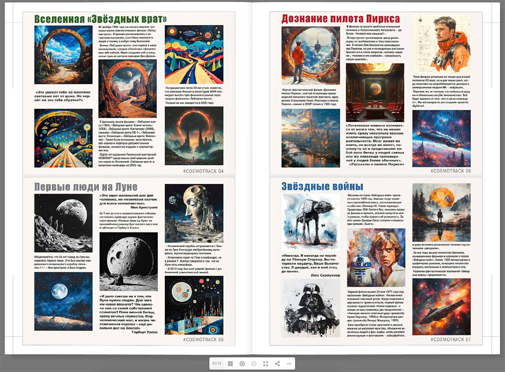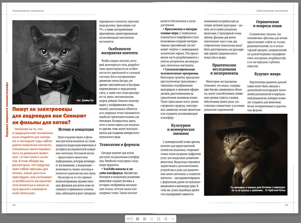 Оформление журнала сдержанное, в минималистическом стиле. Таким и останется. Объем номера составил 72 страницы.