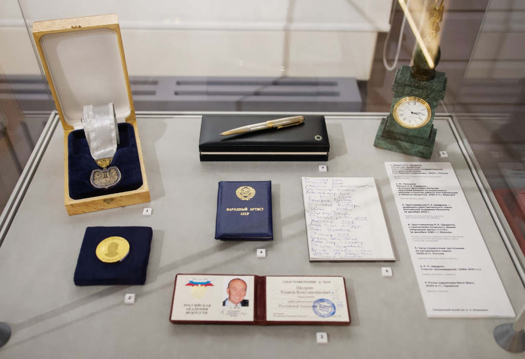 Одним из центральных событий программы открытия Музея стала эксклюзивная выставка Бахрушинского театрального музея — «Музей семьи Щедриных». В ней представлены подлинные экспонаты из собрания музея, переданные лично Родионом Константиновичем: костюм-тройка John Serafino, часы из змеевика, перьевая ручка Montblanc, а также удостоверения, награды и редкие рукописи, среди которых письма и нотные записи. Особое место занимают веер Майи Плисецкой для партии Китри в балете «Дон Кихот», который стал символом ее темпераментного образа, и балетные туфли 1970-х годов. Благодаря этим материалам гости музея смогут погрузиться в подлинную историю семьи Щедриных.