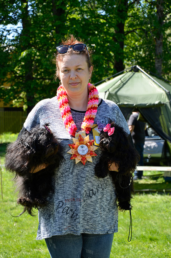 Первой собакой в нашей семье стал русский черный терьер. И второй собакой тоже. С этих пор жизнь наша очень сильно изменилась в лучшую сторону. Выставки в России, заграничные выставки, слеты породников, фестивали, спортивные кинологические состязания прочно вошли в нашу жизнь. Мы исколесили полстраны на машине со своими чернышами, познакомились с огромным количеством людей, появилось много друзей и в России и за рубежом. Жизнь била ключом. В 2008 году я решила получить потомство от своих собак, а так как нас учили с детских лет, ко всему подходить ответственно, я записалась на курсы в кинологическом клубе Лидер, который входил в состав Российской Кинологической Федерации. Учась на этих курсах, я и узнала о том, что существует просто потрясающе красивая наша отечественная порода русская цветная болонка.