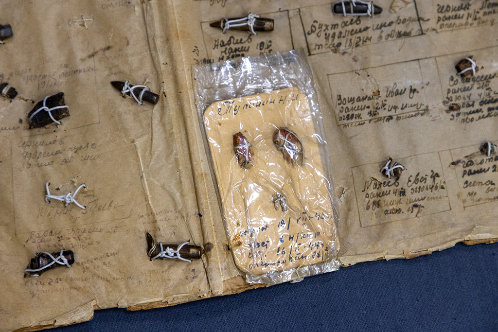 К участию в создании экспозиции присоединился и Национальный музей Республики Татарстан — партнер Музея Победы в рамках международного проекта «Территория Победы». Из фондов культурного учреждения в интерактивный комплекс «Реликвии Победы» передали дневник военного врача, хирурга Григория Иосифовича Иваненко. На фронт он был призван в июне 1941 года из Казани. Сразу же отправился в военный госпиталь на передовую, возглавил нейрохирургическую группу роты медицинского усиления. Гвардии военврач 2-го ранга Иваненко был командиром операционно-перевязочного взвода 311-го отдельного медико-санитарного батальона 60-й гвардейской стрелковой дивизии. За годы Великой Отечественной войны он провел свыше тысячи сложных операций, в том числе на сердце и на поврежденные участки мозга. К дневнику пришиты осколки и пули, извлеченные из тел советских бойцов. У каждого осколка есть запись – это фамилия, имя и отчество раненого, дата ранения и дата операции. Все эти люди — более полусотни бойцов — остались живыми благодаря Григорию Иосифовичу.
