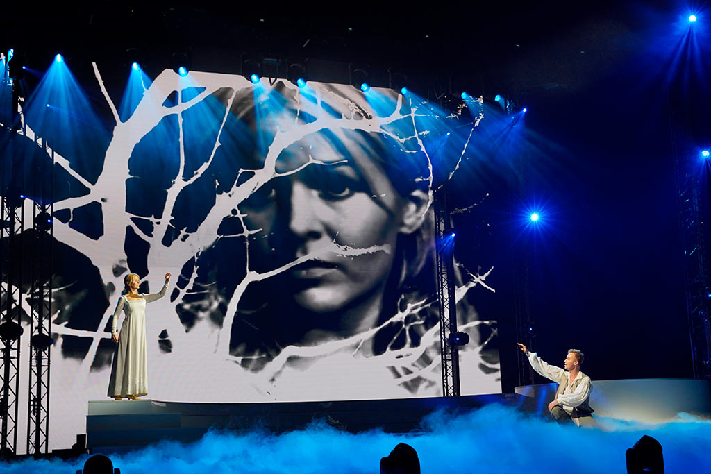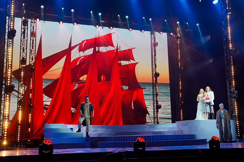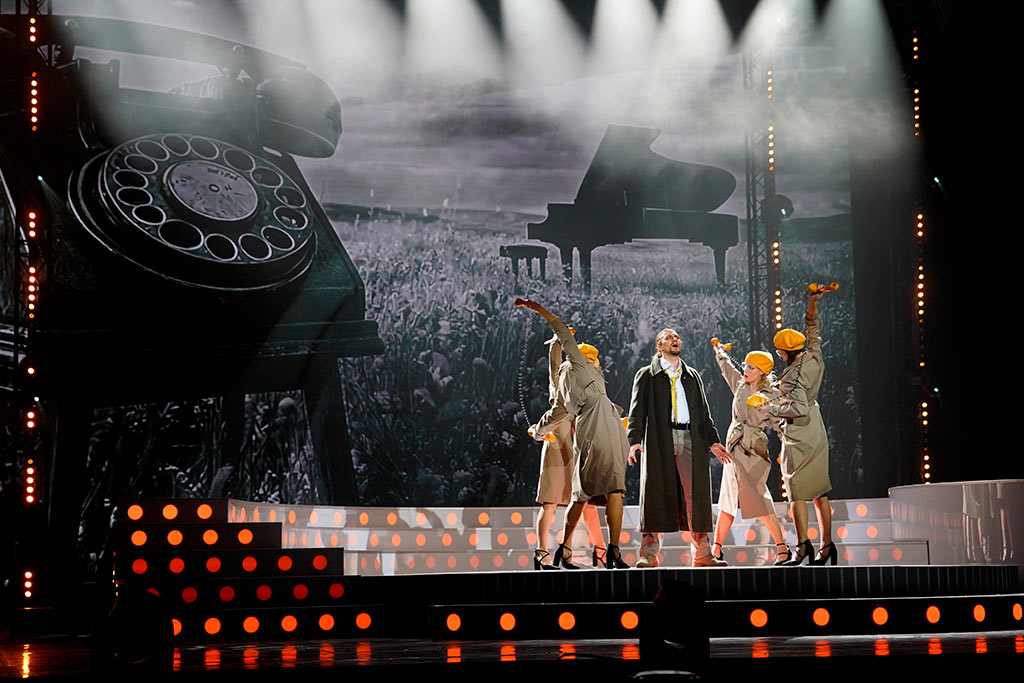 На сцене получили воплощение и комсомольские стройки, и демонстрации трудящихся, и споры творческой молодежи с суровым цензором (Юрий Мазихин), и встречи с суперзвездами ушедшей эпохи — друзьями Исаака Дунаевского. Роль актрисы Любови Орловой исполнила Нонна Гришаева, роль поэта Василия Лебедева-Кумача — Ростислав Колпаков, роль режиссера Григория Александрова — Иван Ожогин. Артиста эстрады Леонида Утёсова сыграл Эмиль Салес, а композитора Тихона Хренникова — Роман Рассказов.
