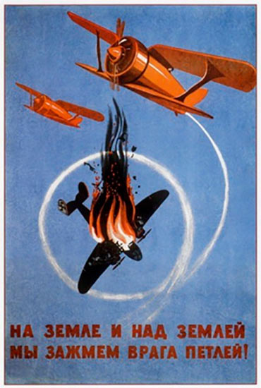 И хотя Павел Петрович в дальнейшем отдавал предпочтение масштабным картинам с большим количеством персонажей, во время Великой Отечественной он снова вернулся к простой наглядной агитации, как например на плакате 1940 г. «На земле и над землёй мы зажмём врага петлей!». Советский самолёт разгромил противника и теперь он в огненных языках падает вниз. Как такой плакат не сможет поднять боевой дух пилота?