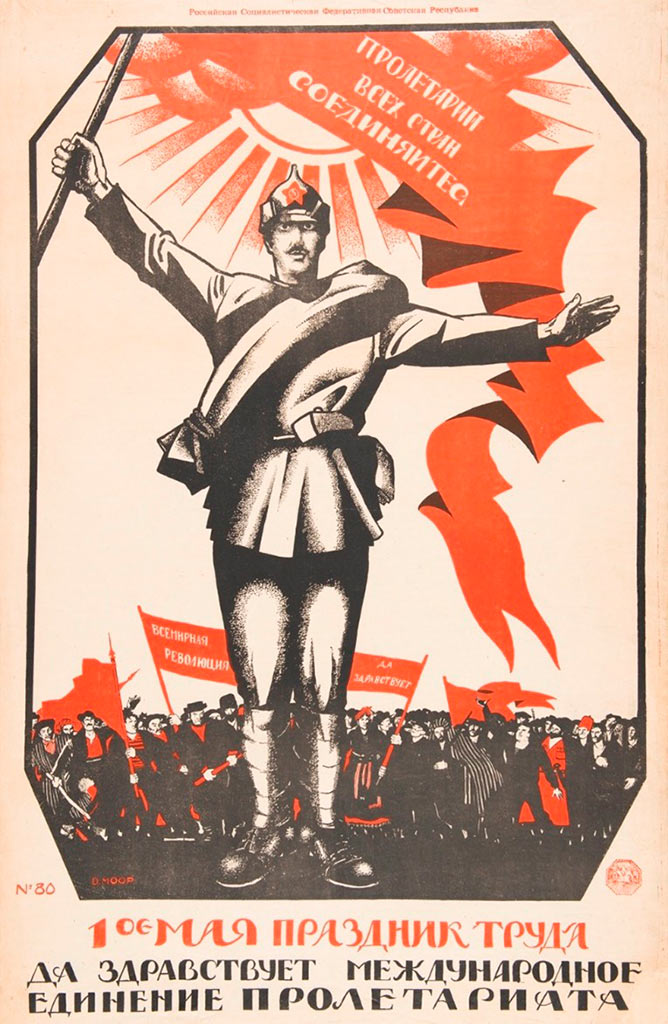 Наглядная агитация новой власти в значительной степени концентрировалась именно на Первомае, и главным инструментом этой агитации был яркий плакат: просто, доходчиво, агрессивно — то, что требовалось целевой аудитории. В ней необходимо было поддерживать революционный пыл во время Гражданской войны, а потом встала задача стимулировать на тяжёлый и не всегда благодарный труд. Можно уверенно сказать, что ни один сколько-нибудь значимый красный плакатист просто не имел шанса пройти мимо этой темы. А Советская Россия, в свою очередь, создала новый художественный жанр — массовый политико-производственный плакат.