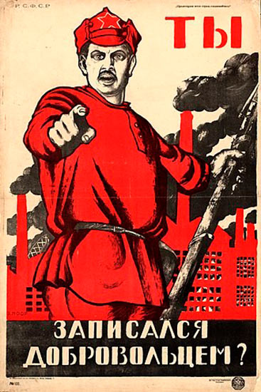 Первым королём этой агитации стал самоучка из Новочеркасска Дмитрий Орлов, взявший себе фамилию романтического шиллеровского разбойника. Дмитрий Моор — автор таких работ, как «Помоги» о голодающих Поволжья, «Врангель ещё жив» и, конечно, бессмертного автопортрета «Ты записался добровольцем?». Бумага, тушь, перо, бессмертие.
