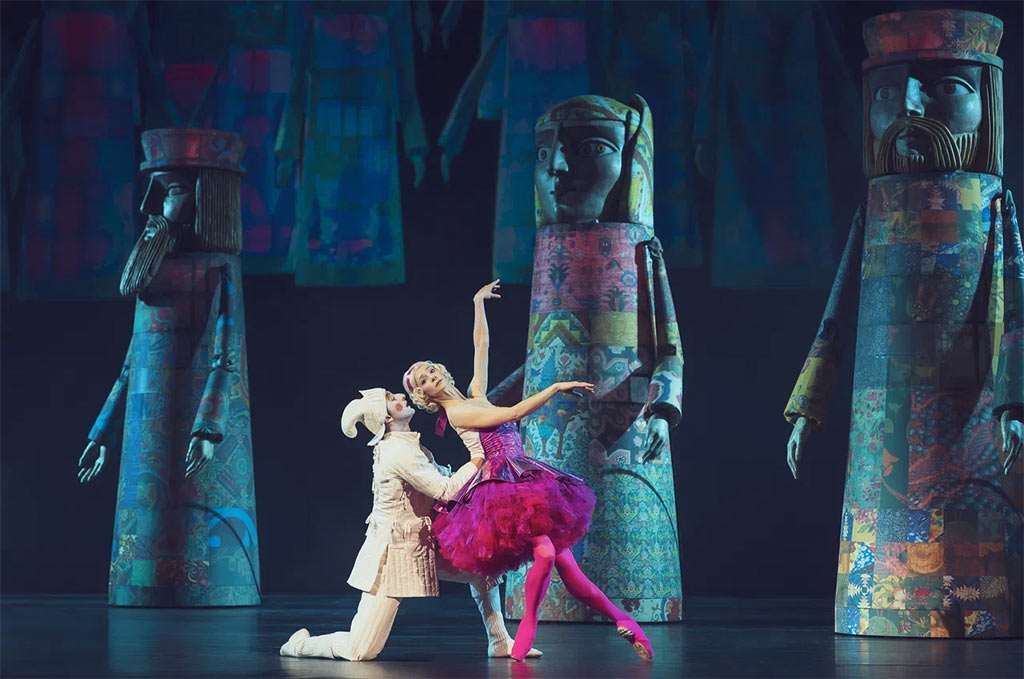 Режиссерский концепт обоих спектаклей создал Алексей Франдетти, чьи постановки в разных театральных жанрах многократно отмечены престижными наградами. В «Петрушке» он пошел по пути раскрытия новых граней авторского либретто, добавив оригинальное решение с оживающими декорациями-куклами – исполинскими деревянными столбами с архаическими лицами и подсвеченными изнутри орнаментальными костюмами – создал их художник-постановщик Театра кукол им. С.В. Образцова Виктор Никоненко.