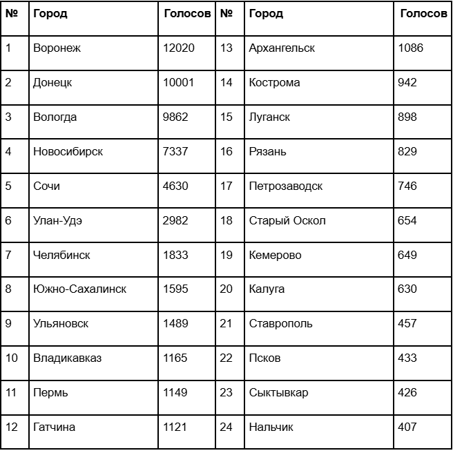 Напомним, что в ходе народного голосования каждый гражданин России может отдать свой голос 1-5 любимым городам.