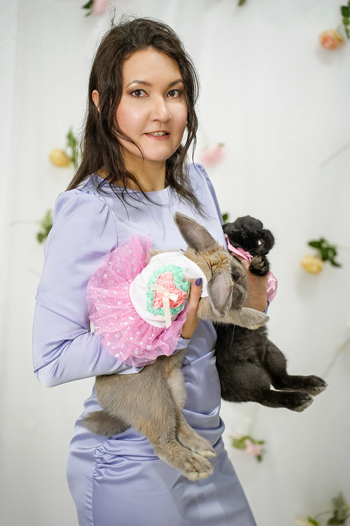 Модный дизайнер одежды для домашних животных Динара Садекова организовала и провела масштабный фотопроект с кроликами.