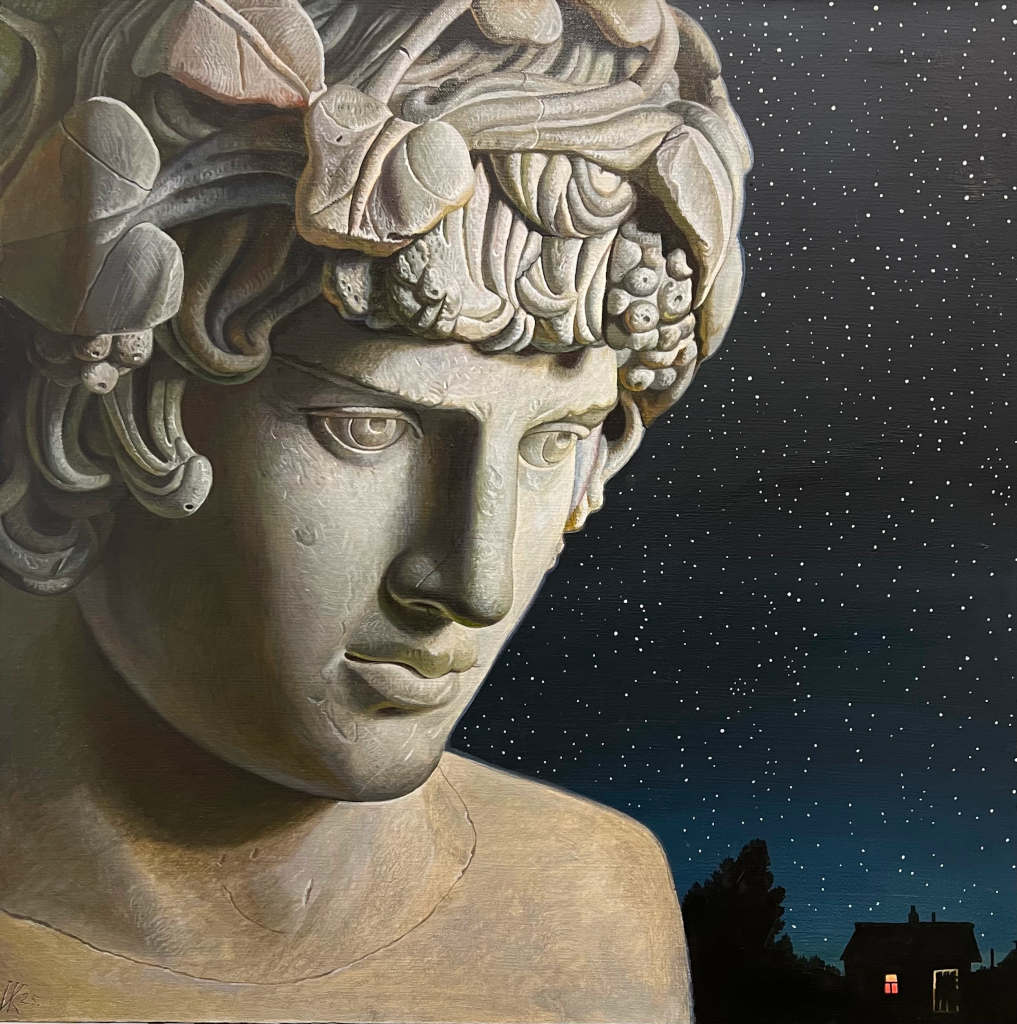 В свете глобальных событий тема традиций и их влияния на культурный код приобретает колоссальное значение и вдохновляет на яркое художественное высказывание. В «Русском тумане» Иван Коршунов спроецировал взор задумчивого Диониса на русскую звездную ночь со светом окон в избах, представил соблазнение Фавном красавицы в туманном поле, а в центральном полотне «Хтонь» поселил в лес скульптурную группу эпохи античного эллинизма «Лаокоон с сыновьями».