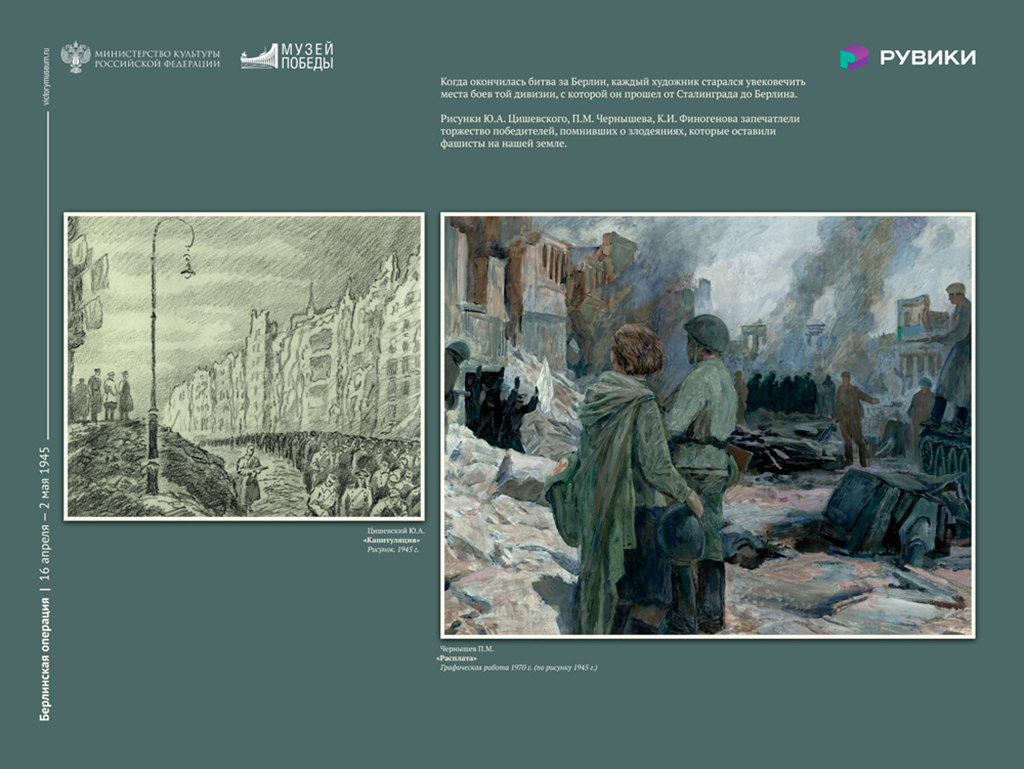 В экспозицию вошли оцифрованные художественные работы из фондов Музея Победы. Проект переносит зрителей в военные годы, раскрывая через творчество живописцев и графиков ключевые этапы Великой Отечественной войны. Среди них – контрнаступление под Москвой, Сталинградская битва, блокада Ленинграда, Курская битва, битвы за Днепр и Берлин. Фронтовые художники, рискуя жизнью, запечатлевали героизм и мужество солдат и офицеров. Яркие образы раскрывают вклад каждого воина Красной Армии в Победу в Великой Отечественной войне.