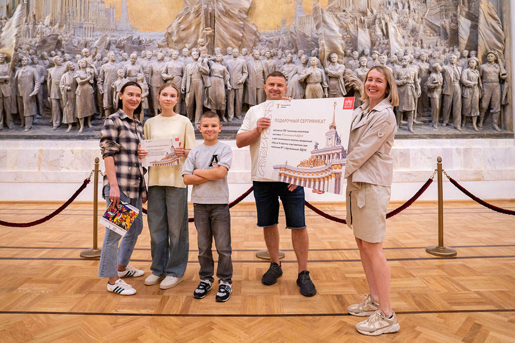 Юбилейный посетитель выставки получил в подарок карту Друга Третьяковской галереи, которая позволит ему в течение года посещать выставки и постоянные экспозиции Галереи, а также карту Музейного города ВДНХ, которая дает право на посещение музеев ВДНХ. Также для 100-тысячного гостя и его близких будет организован праздничный обед на 4 персоны в одном из залов Центрального павильона.