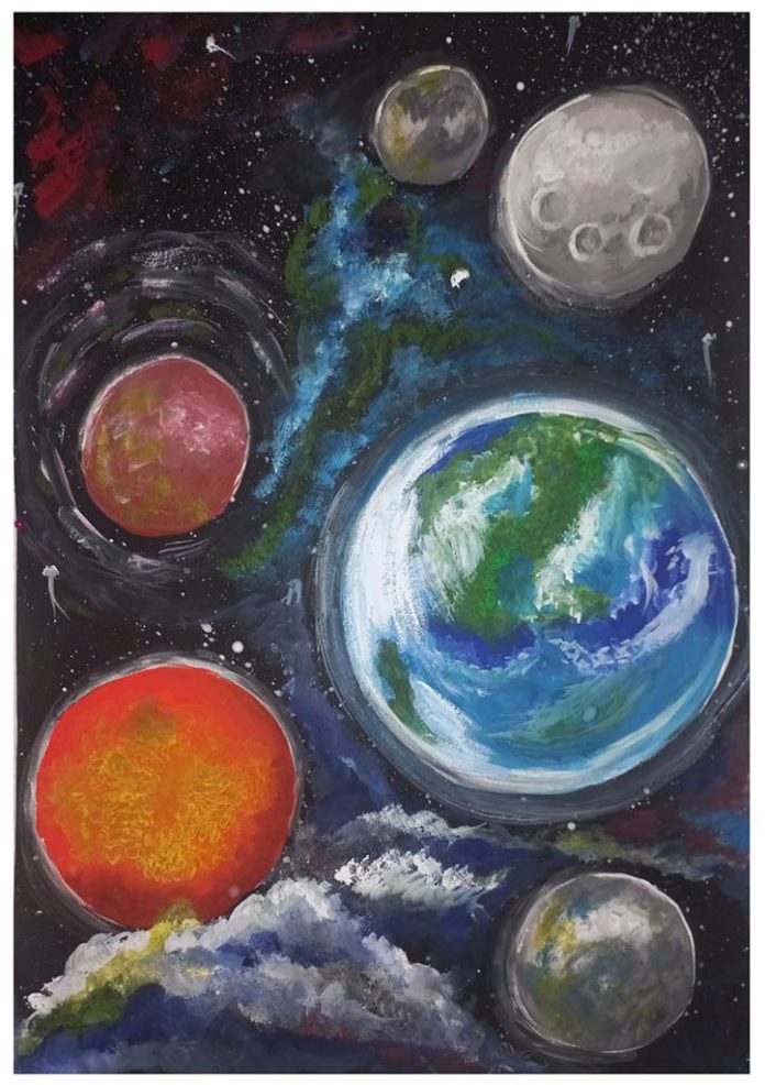 Художник Анастасия Хорохордина, 12 лет. Небесная красота. 2025. | Россия, ЛНР, г. Красный луч. МБУДО «Краснолучская детская школа искусств». Преподаватель Светлана Владимировна Луцева. Номинация: живопись