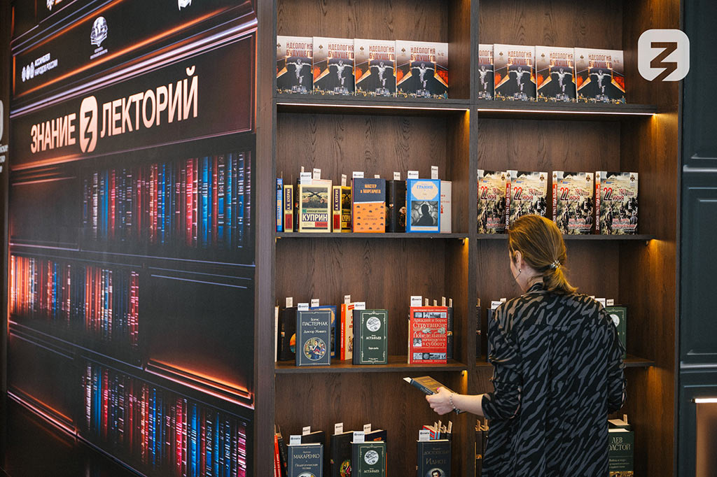 В этом году Знание.Библиотека вновь визуально поддержит идею книги в качестве одного из наиболее ценных и универсальных источников знания. Стенд стилизуют под современную библиотеку, в которой будут представлены классические книги, рекомендованные лекторами Общества. Параллельно с библиотекой на стенде впервые будет организована студия для съемок коротких тематических подкастов с гостями Форума, которые обсудят ключевые вызовы времени, а также поделятся своим взглядом на возможные решения, обеспечивающие устойчивый рост и создание возможностей для молодежи.
