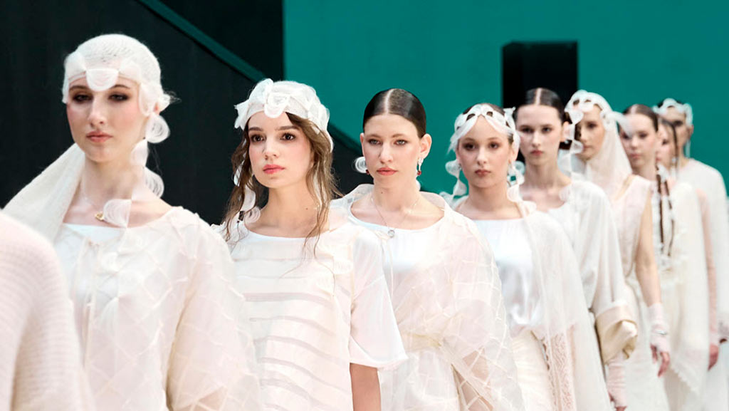 Артель «Воскресение» добавила эмоциональный объем через архитектурную работу с тканью: асимметричные формы, драпировки, ритмическая фактура. «Иммерсивный показ «Земля — Космос» в едином созвездии брендов расширяет представление об идентичности как о языке эпохи и территории», — поделилась Светлана Воскресенская, основатель марки.
