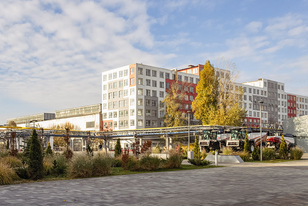 Архитектурное бюро dot.bureau, специализирующееся на благоустройстве общественных пространств: парков, скверов, набережных, представляет необычный проект. Архитекторы создали концепцию комфортной среды для завода Ростсельмаш. Пространство крупного предприятия, выпускающего сельхозтехнику, переосмысляется, превращаясь из неухоженной закрытой территории с разношерстными архитектурными решениями в современный индустриальный мини-город, в котором комфортно и работать, и отдыхать.