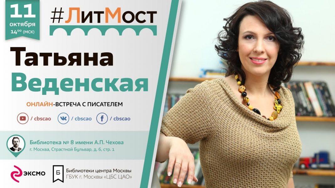 11 октября 2018 года прошла онлайн-встреча с популярной российской писательницей Татьяной Веденской. В рамках всероссийского издательско-библиотечного проекта «#ЛитМост» Татьяна смогла ответить на вопросы читателей со всей страны.
