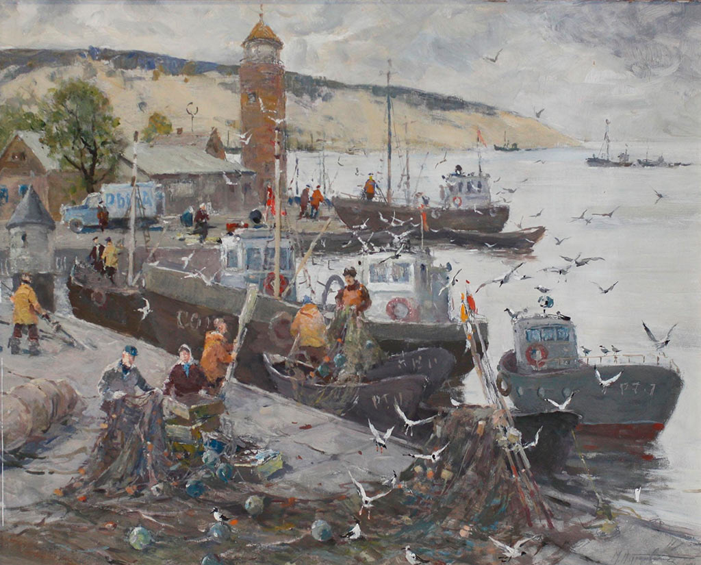 В том, что область прославилась как край рыбаков, есть немалый вклад местных мастеров изобразительного искусства. Для изучения быта и повседневной жизни работников рыболовецкой отрасли художники отправлялись с промысловыми судами в Атлантику, выезжали в командировки на судоремонтные предприятия, в рыбацкие колхозы и порты. Они же иллюстрировали книги для Калининградского издательства, создавали произведения промышленного дизайна. Рассказ о море и его тружениках представлен в традиционном морском пейзаже, в сюжетных композициях на полотнах Владимира Михайловского, Людмилы Тамбовцевой, Адольфа Шевченко, Александра Балабаева, Константина Кухоренко, Виталия Короткова и других художников. Отдельный блок выставки посвящен 100-летнему юбилею Михаила Пясковского.