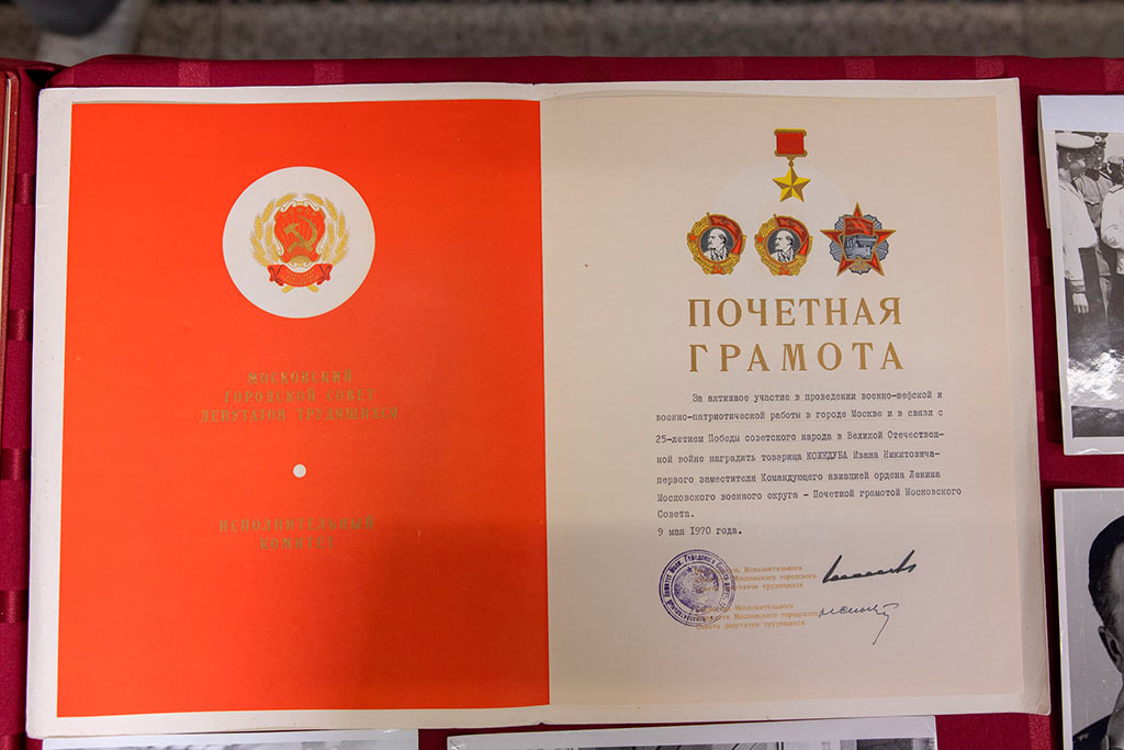 4 июня в Музее Победы прошла передача реликвий маршала авиации, трижды Героя Советского Союза Ивана Никитовича Кожедуба. Фонды музея пополнили фотографии, документы, поздравительные открытки, которые разыскали и выкупили в Канаде наши соотечественники. Событие состоялось в преддверии знаменательной даты — 8 июня исполняется 105-лет со дня рождения прославленного летчика-аса.