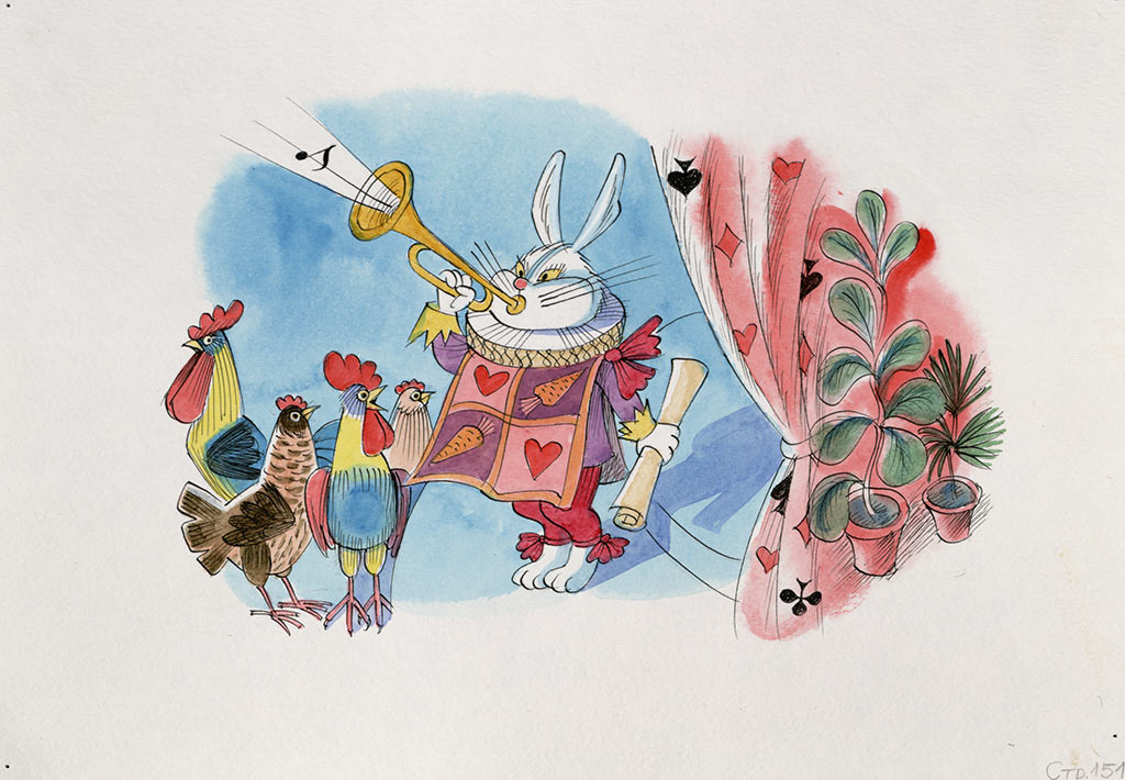 Государственный литературный музей имени В.И. Даля посвятил книге отдельную большую экспозицию, в которой поиграл на славу. Во-первых, выставка богата иллюстративным материалом. Книжная графика Мая Митурича, Геннадия Калиновского, Павла Пеперштейна, Юрия Ващенко и других позволяют увидеть Алису и персонажей сказки в самом разном воплощении – от забавного до странного. К иллюстрациям добавлен документальный материал – архивные фото, документы, фотографии (отдельный раздел посвящен путешествию Кэрролла в Россию), есть отдельные залы, посвящённые сну и, конечно, времени.