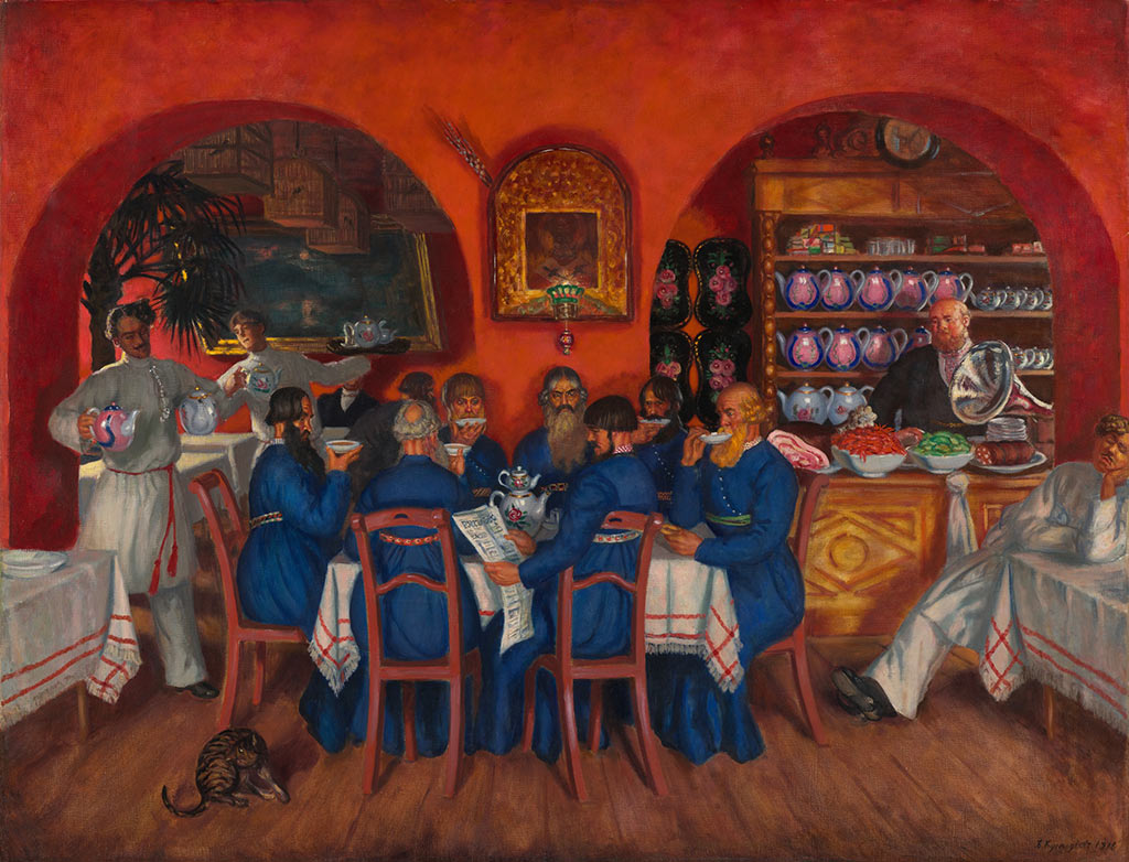 Борис Кустодиев – художник купеческой Руси, ярмарочной, торговой, праздничной. Его картины полны жизнелюбия, они известны нам с самых ранних лет детства. Конечно, все вспомнят «Купчиху за чаем» и её не менее вальяжную кошку. Вот она, наша Россия-матушка, обильная, вкусная.