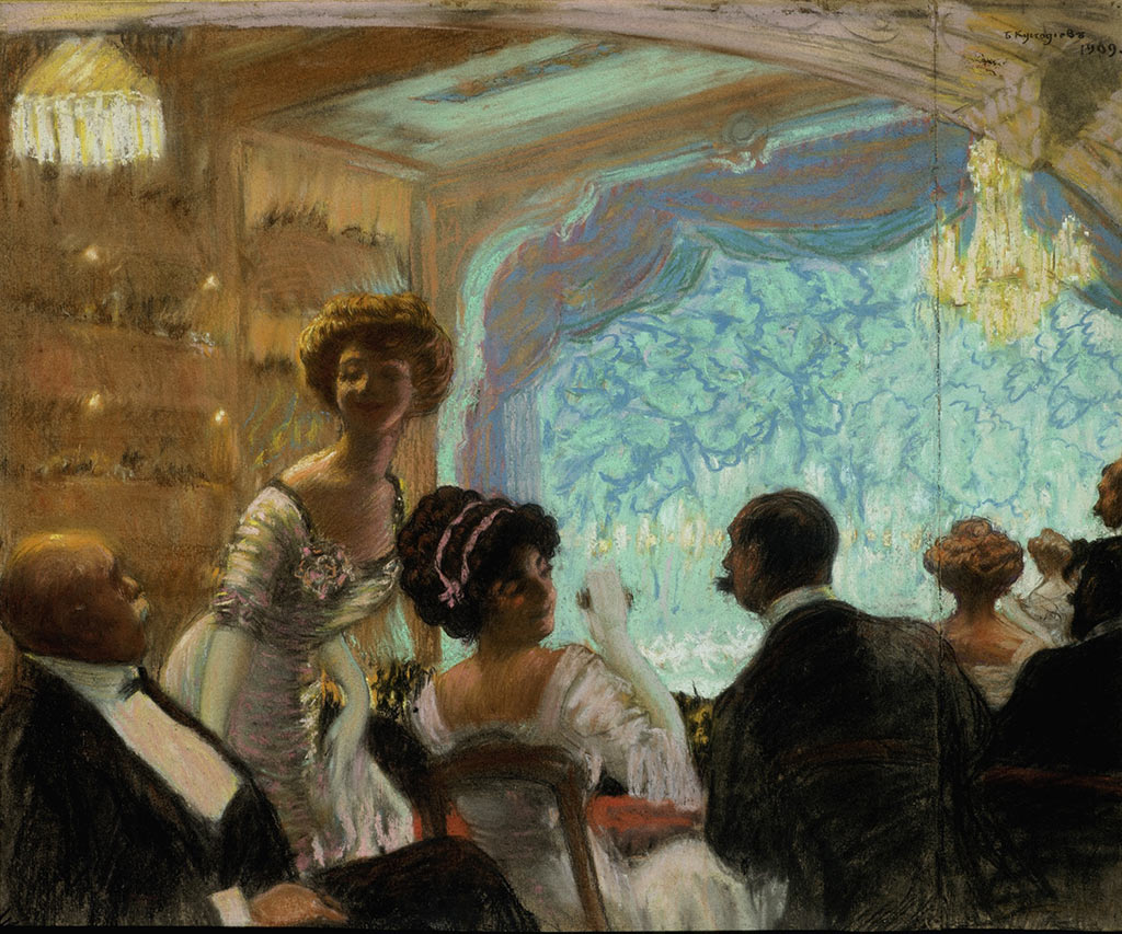 Такого колоритного мастера не мог обойти театр. Его сценография к спектаклю «Блоха» (по рассказу Николая Лескова «О тульском Левше и стальной блохе»), поставленном для 2-го Московского художественного академического театра и Большого Драматического (Ленинград), тоже можно увидеть на выставке в отдельном разделе «Театр». Творчество Николая Лескова, изобилующее самыми разными историями быта русских мастеровых, крестьян, представителей духовного сословия, разночинцев и мещан, как нельзя кстати пришлось Борису Кустодиеву. Тут и ироничное изображение лесковских персонажей, и пестрое балаганное действо, и некоторая декоративность происходящего. «Страна Кустодия» заслуживает посещения.