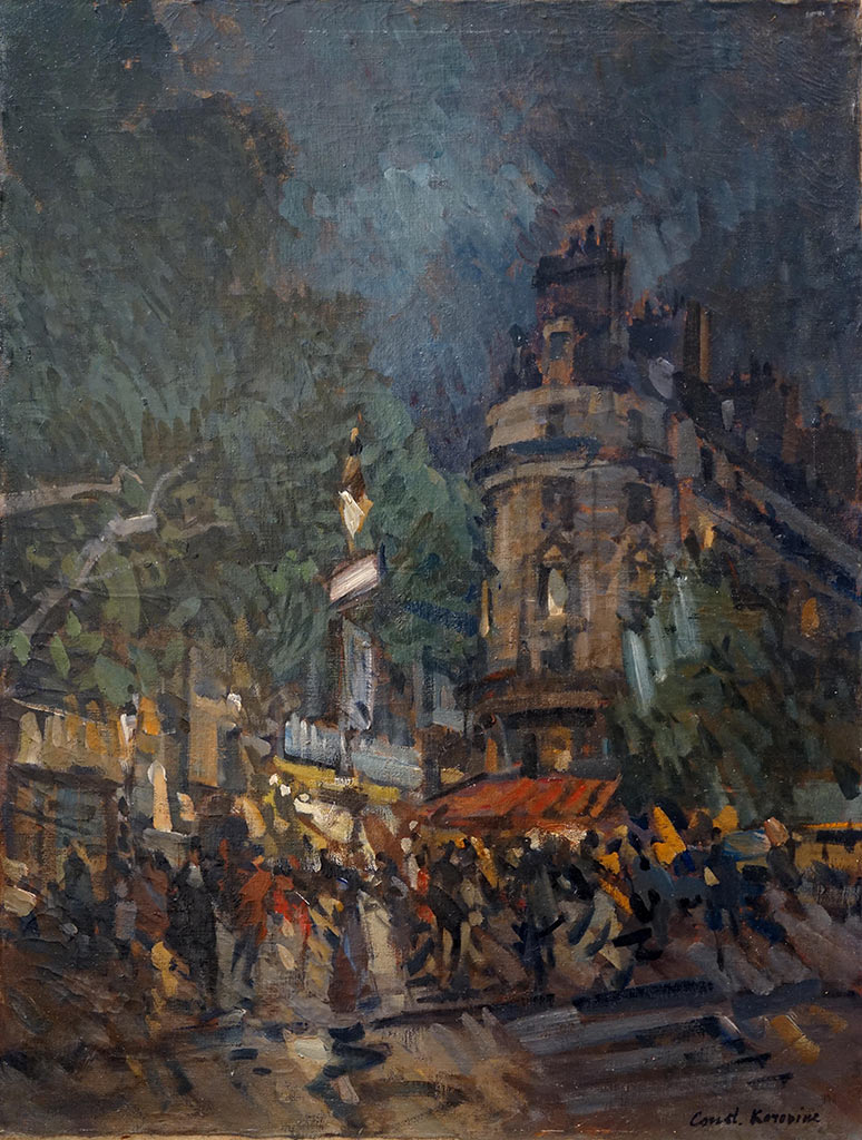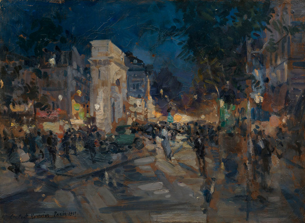 Тем больший ажиотаж вызывают время от времени появляющиеся на арт-рынке поздние картины Константина Коровина, написанные после 1922 года, когда художник эмигрировал в Париж. В этот период он создал серию ночных видов города. Мастер и раньше любил писать эффекты ночного освещения, однако его произведения 1920–1930-х отличаются более экспрессивной живописной манерой, контрастностью цвета и света. Еще в конце ХХ века на фоне интереса со стороны российских коллекционеров спрос на эти работы начал расти, а цены на международных аукционах стремительно взлетели. Не удивительно, что поздние парижские пейзажи Коровина, все чаще возникающие на арт-рынке, требуют особенно пристального внимания экспертов.