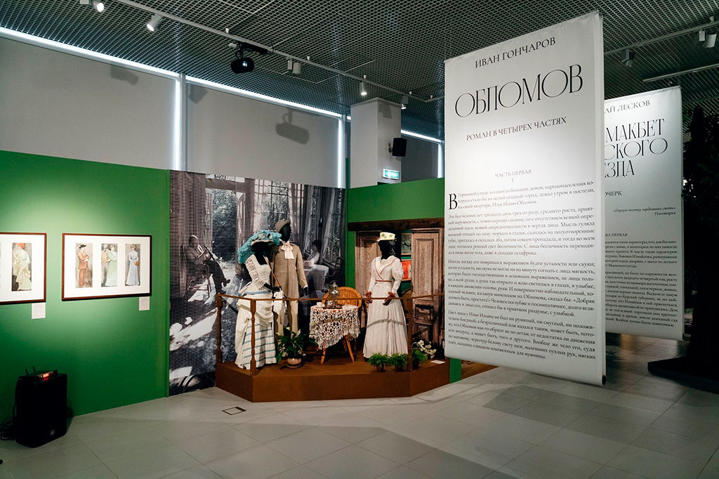 Именно на внешней, где-то декоративной изысканности делает акцент выставка. Экранизация как возможность сбежать от реальности и спрятаться среди чарующих пейзажей. Дворянская реальность как таковая — в дополнение к идиллии кино — представлена в разделе живописи, подготовленном совместно с музеем-заповедником «Абрамцево». Работы Василия Поленова, Константина Коровина, Аполлинария Васнецова и других художников стоит считать основой образа дворянской жизни, воплощенного в кинематографе.