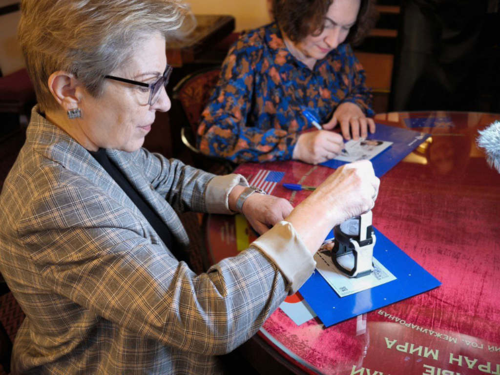 Первыми оттиск штемпеля на марку поставили Президент и создатель ФГБУК «Музей-заповедник «Музей Мирового океана»» Светлана Сивкова и начальник Калининградского почтамта Инесса Панкстьянова.