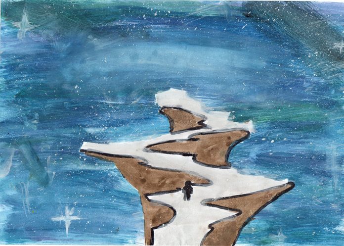 Художник Каролина Хомяк, 13 лет. В поисках смысла среди звёзд. Бумага, акварель. 2025. | Россия, Запорожская область, Приазовский муниципальный округ. Номинация: графика.