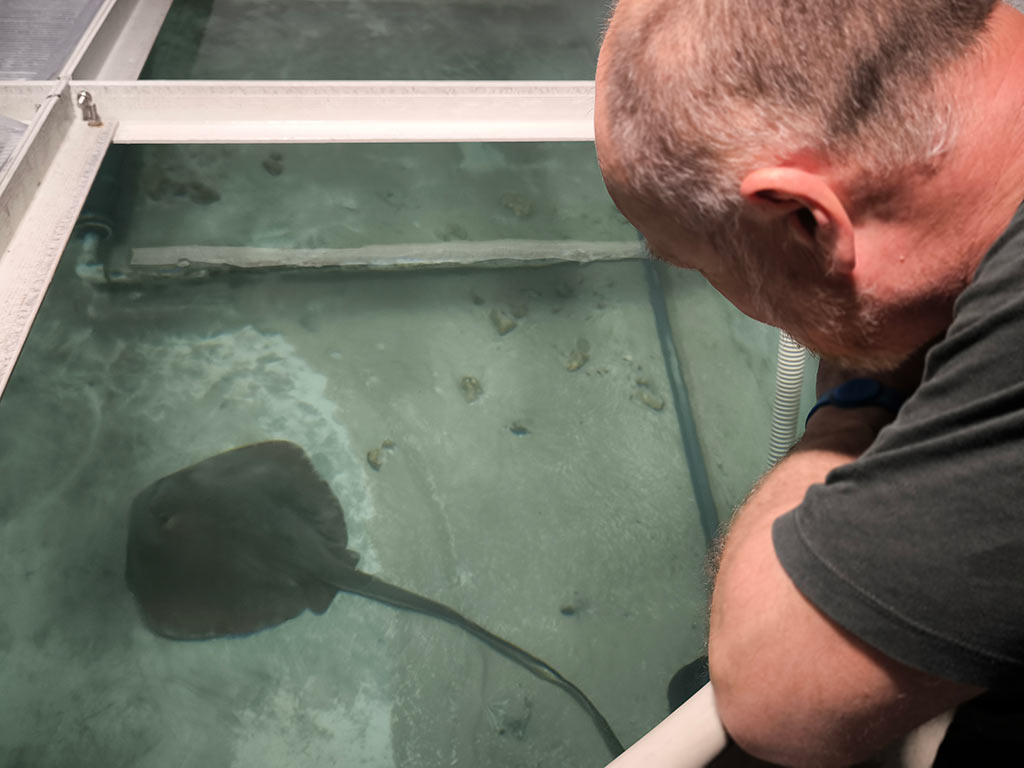Скатов, как и других рыб, не сразу выпускают в аквариумы. После доставки гидробионтов в карантинные залы, в транспортировочных пакетах замеряют уровень солености воды, температуру и другие жизненно-важные показатели, приближают их к условиям, созданным в адаптационных аквариумах и, через некоторое время, перемещают в карантинный бассейн.