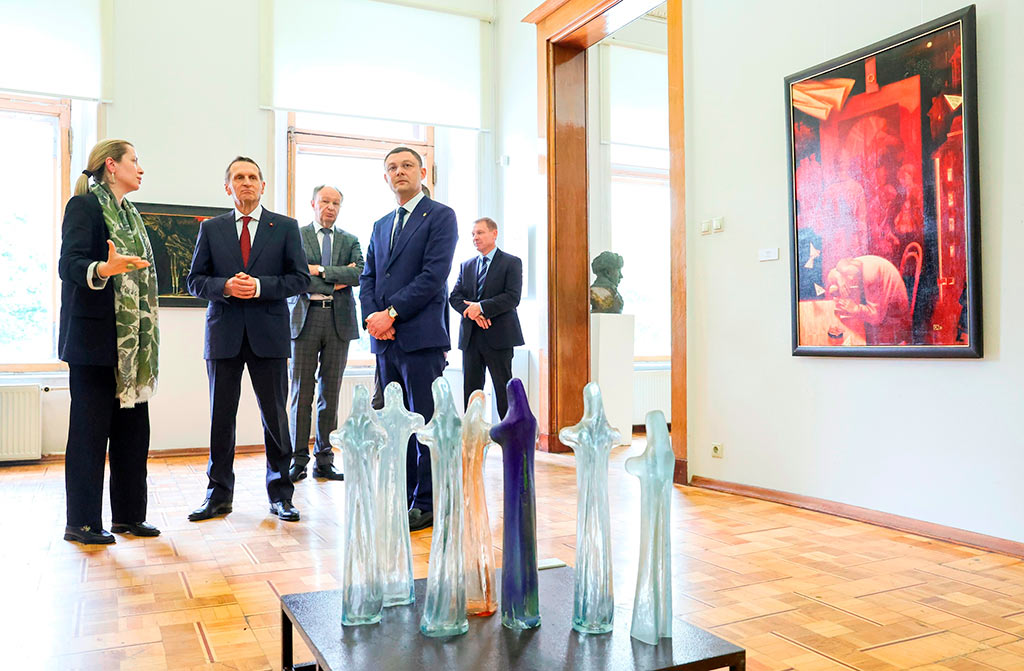 В ходе визита Председатель Российского исторического общества Сергей Нарышкин ознакомился с выставочным проектом «Вера – Подвиг – Победа», который является посвящением 80-летию Победы в Великой Отечественной войне и был реализован Российской академией художеств при поддержке Министерства культуры Российской Федерации. «Этот проект и о важности сохранения исторической памяти, и о том, как тема подвига, победы отображается в творчестве разных поколений художников», – подчеркнула научный руководитель проекта, вице-президент Российской академии художеств Татьяна Кочемасова.