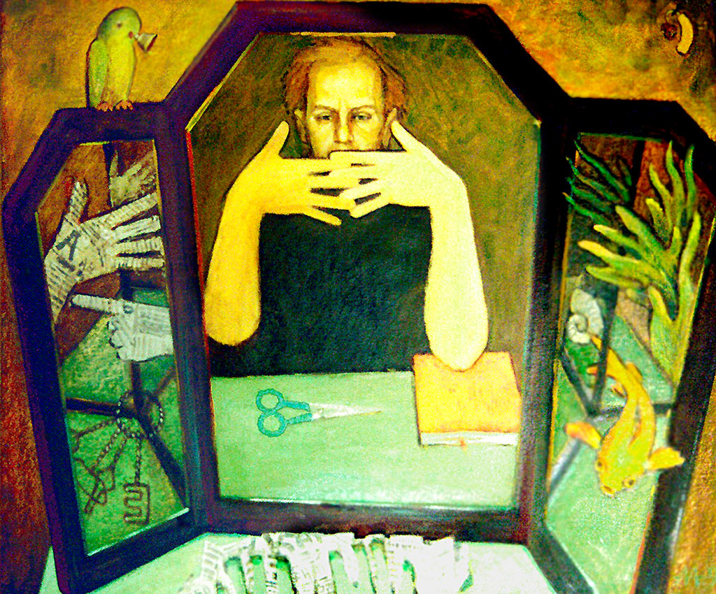 Интересны темы и образы его художественных работ: в них центральное место занимает человек, его внутренний мир, эмоции и взаимоотношения с окружающей действительностью. Почти в каждой работе присутствуют жесты. Его картины – это визуальные метафоры, размышления о судьбе глухого человека в мире звуков.