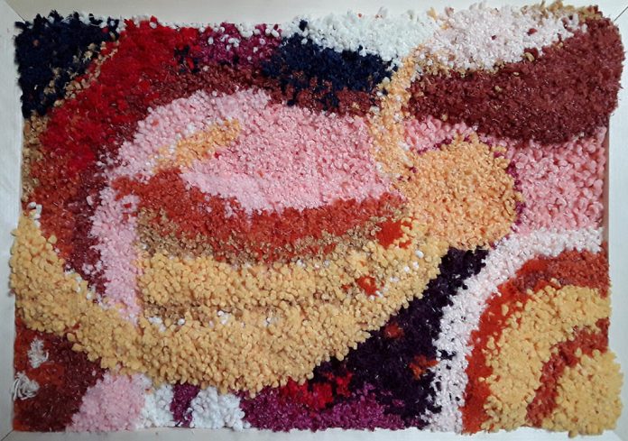 Художники: Мария Андреева (10 лет), Мариамна Гулиева (10 лет). Волшебный космос. 2025. Техника нетканного гобелена акриловой пряжей. | Россия, г. Санкт-Петербург. ГБОУ гимназия № 642 «Земля и Вселенная» г. Санкт-Петербурга. Преподаватель Полина Айваровна Добросмыслова-Кяэр. Номинация: декоративно-прикладное искусство.