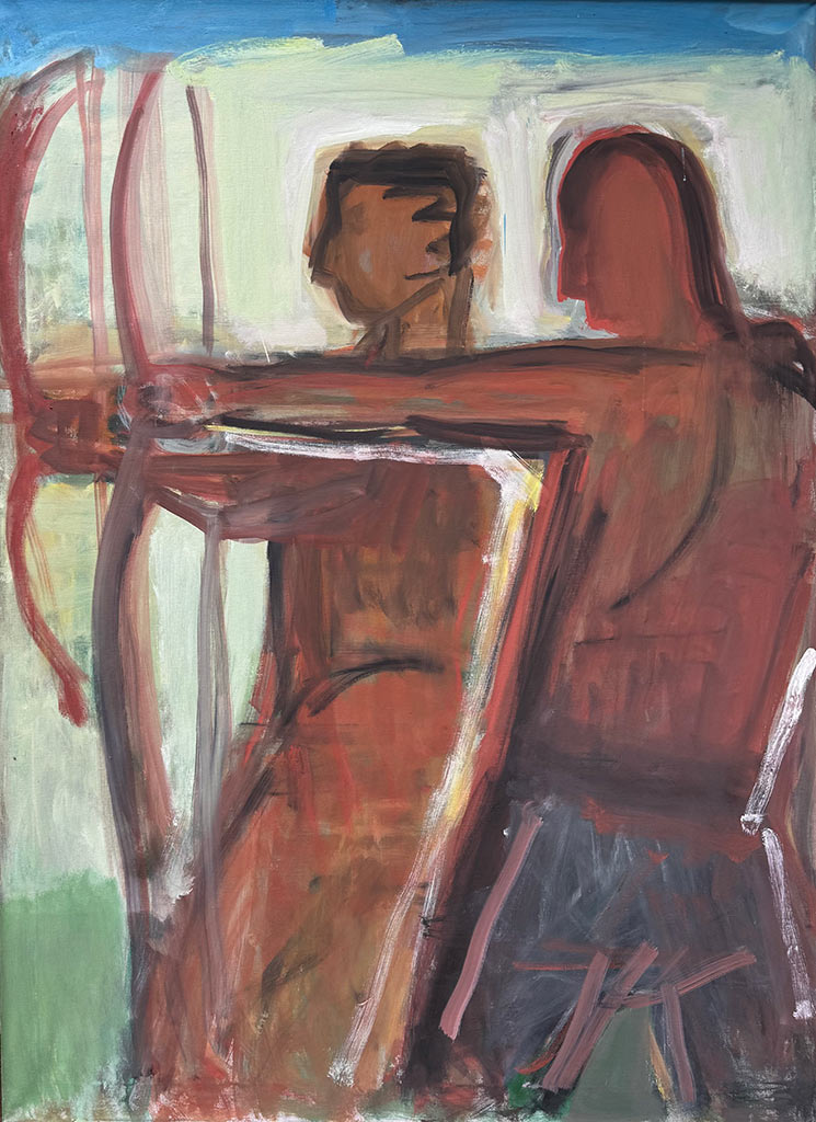 Трансцендентные образы живописных произведений Ирины Старженецкой (р.1943) передаются в динамике и незавершенности. Художница переводит иконографические каноны в абстрактную силуэтность, уходя от портретной конкретности.