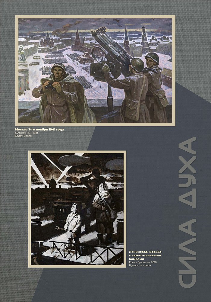 Художественный проект объединил около 40 произведений. Это работы художников-фронтовиков Бориса Неменского, Павла Блока, Бориса Преображенского и других живописцев из фондов Музея Победы и молодых авторов, отобранных по результатам конкурса, проведенного музеем.