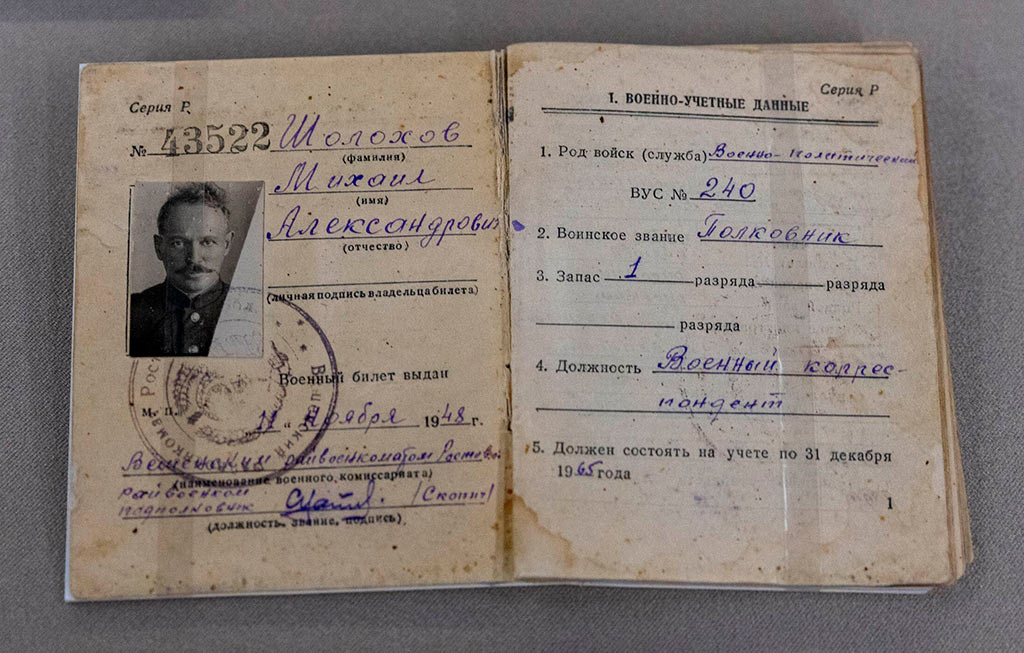 «Впервые в Москву привезли подлинные раритеты из Государственного музея-заповедника М.А. Шолохова «Тихий Дон». Москвичи и гости столицы могли увидеть военную форму и снаряжение писателя, награды, личные документы и фронтовые заметки, рукописные страницы романа «Они сражались за Родину», — рассказали в Музее Победы.