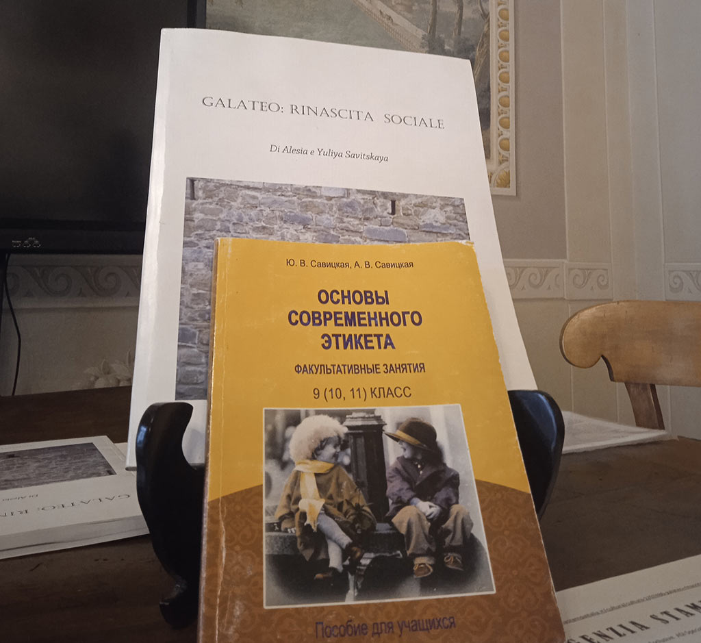 В рамках встречи была презентована последняя концептуальная книга Алеси и Юлии Савицких «Этикет: Социальное возрождение» (Alesia e Yuliya Savitskaya «Galateo: Rinascita Sociale»). Особый акцент и интерес у студентов и педагогов был к их учебно-методическому комплексу «Основы современного этикета», который был опубликован в 2010 году в Минске, рекомендован НИО Министерства образования Беларуси в качестве факультатива предназначенного для изучения этикета в школах, колледжах. УМК ещё не переведен на итальянский язык, но авторы уже начали работу по его переводу.