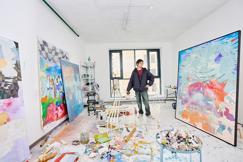 «Я часто переезжаю из одной студии в другую, последние пять лет вообще работал в разных странах. И сейчас это помещение подходит идеально. Удачное месторасположение — здесь стык различных архитектурных направлений, и очень хочется это изобразить. Все подготовлено, все под рукой. Знаете, раньше мне казалось, что в рабочем пространстве даже стула не должно быть, чтобы присесть, но, оказывается, чем больше комфорта, тем ты продуктивнее», — делится своими первыми впечатлениями Артур Кривошеин, абстракционист, выпускник МГТУ им. Баумана и «Свободных мастерских» ММОМА.