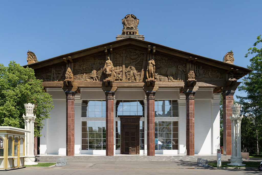 Реставрация павильона № 67 «Карелия» (бывшего «Карело-Финская ССР», «Советская печать») на ВДНХ завершена. Совсем скоро в обновленном павильоне откроется иммерсивная мультимедийная выставка «Ожившие шедевры русской сказки».