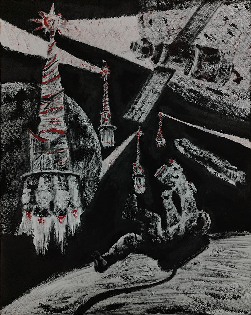 Художник Виталий Пиваев, 16 лет. Звёзды – маяки. Бумага, темпера, композиция. | Россия, Санкт-Петербург, ФГБОУ СПБГАХЛ им. Б.В. Иогансона при РАХ. Номинация: композиция.
